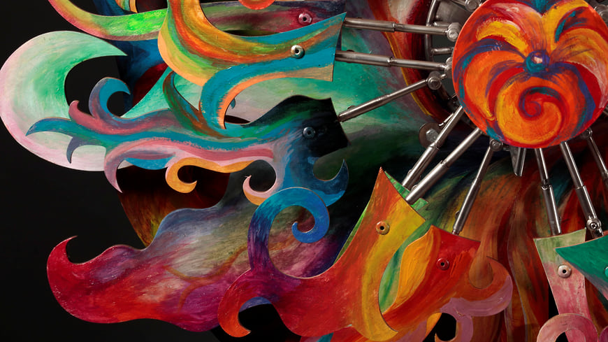 В мир причудливых механизмов, навеянных природными явлениями, погружает выставка Владимира Мартиросова «Траектории ощущений». Художник, скульптор, сценограф, мастер современного кинетического искусства завораживает ритмичным движением своих мобилей, которые вместе образуют целостную вселенную. «Цветы», «Насекомые», «Веера» и «Облака» сделаны в основном из металла, но выглядят хрупкими и романтичными. Художник намеренно не прячет поршни и рычаги. Наоборот, он предлагает полюбоваться эстетикой этой машинерии как второй природой.