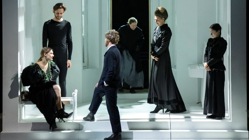 Худрук Театра имени Маяковского Егор Перегудов, в 2022 году сменивший на этом посту Миндаугаса Карбаускиса, продолжает осваивать русское классическое наследие и природные стихии. Его программный «Лес» по Островскому превратился во Всемирный потоп — вся сцена была залита водой. А «Евгения Онегина» он погружает в пространство русской зимы. В декорациях Владимира Арефьева снег то укутывает подмостки перинами, то смерзается в твердь, то превращается в капель.
