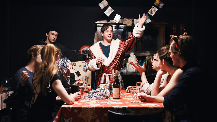 Как это часто бывает у Шерешевского, действие перенесено в наши дни — в питерскую коммуналку, где гости ждут курьера с пиццей на день рождения Иры. Но на этот раз режиссер отказался от своих фирменных экранов: в камерном, интимном пространстве зрители и так чувствуют себя невидимыми наблюдателями в чужой квартире, где разыгрываются очень понятные современные драмы.