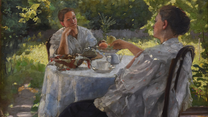 Лукиан Попов. «В саду (Чаепитие)», 1911