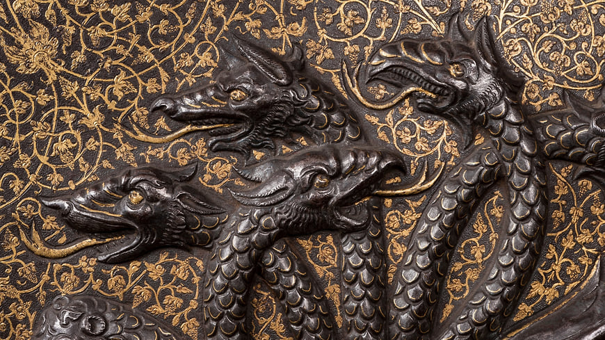 Миланский щит с семиглавой гидрой, фрагмент, сталь, около 1560