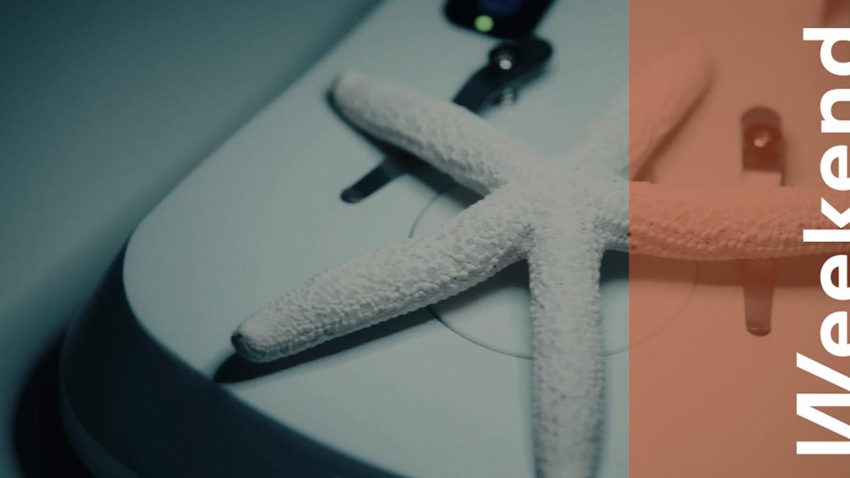 Тут же — очень любопытная в своей неочевидности часть: звуковая инсталляция из подводных биоакустических записей — природных, как, например, шум сталкивающихся айсбергов, и связанных с человеком, как, например, звуки движения кораблей. Из последних и состоит шумовое загрязнение, которое бывает не только на земле, но и под водой.