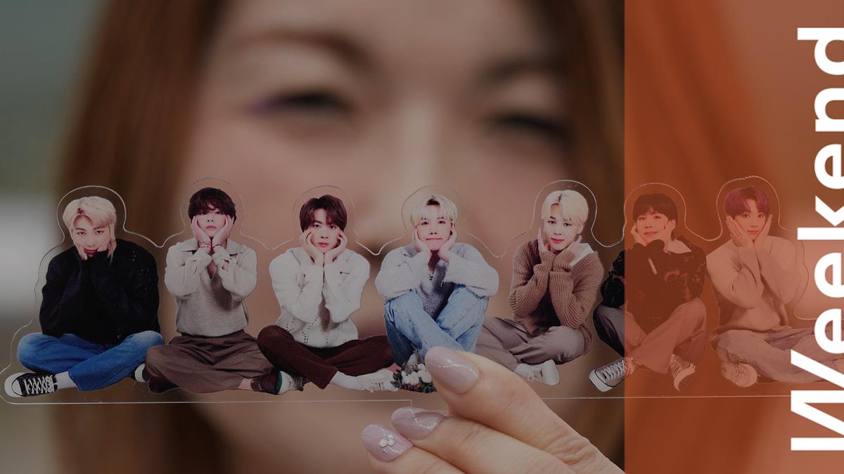 Поклонница K-pop с фотографией группы BTS