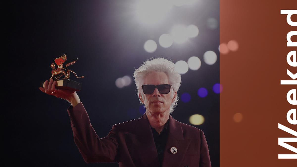 Режиссер Джим Джармуш позирует с «Золотым львом» за лучший фильм «Отец, мать, сестра, брат»