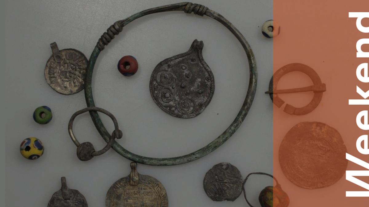 Украшения из женского погребения на территории могильника Гнездилово под Суздалем. В левом нижнем углу – джитал, чеканеный в Индии