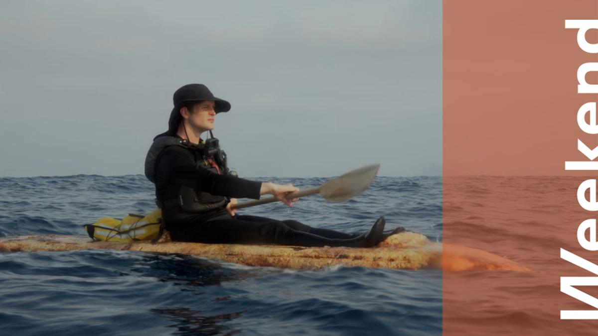 Сэм Шумейкер во время 42-километрового морского перехода на каяке из грибов