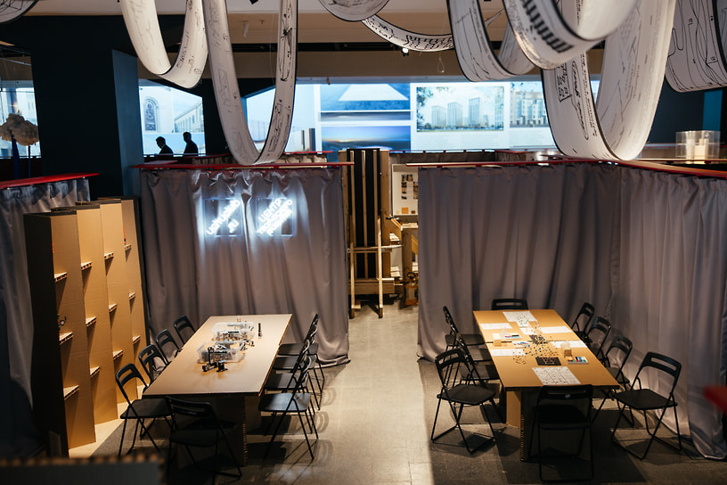 Пространство мы размещали в разных местах. Но постепенно оно сползло в так называемое корыто — нижнюю часть Манежа, работа с которой два года назад обернулась для нас большими сложностями. А в этот раз корыто как-то постепенно в разговорах превратилось в песочницу, и в ней собрались все 10 зон от прошлых победителей. И все с игровым началом.