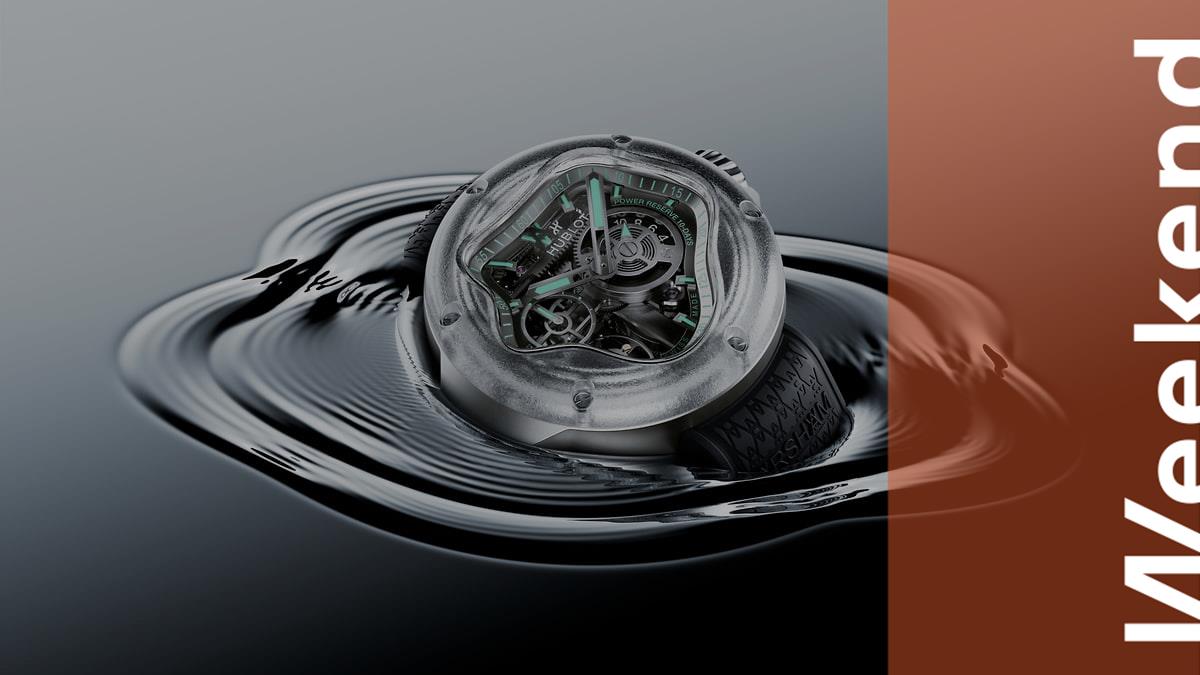 У этих часов, конечно, есть качество скульптуры, не чуждого Аршаму искусства: их корпус сделан из полированного титана с микроструйной обработкой, а вот безель — из полированного и текстурированного лазером сапфирового стекла. И именно благодаря его слегка заблюренной прозрачности и форме в виде растекшейся капли воды эти часы и получили свое арт-измерение, вполне, впрочем, в соответствии с девизом Hublot — Art of Fusion, предполагающим смесь разных, иногда самых вроде бы далеких идей и материалов. Но знаменитые шесть винтов Hublot в форме буквы H никуда не делись и стоят на безеле, как всегда. И если о каких-то работах Аршама действительно сложно сказать, о прошлом или будущем идет речь, то тут все очевидно — это очень футуристичный дизайн.