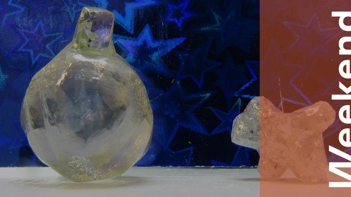 Накануне Нового года на обогатительной фабрике «Севералмаз» (входит в группу АЛРОСА) обнаружены два природных алмаза необычной формы. Кристаллы напоминают праздничные украшения.