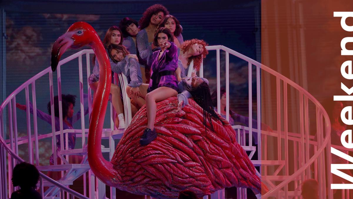 Дуа Липа выступает на сцене Brit Awards в Лондоне, 2019 год