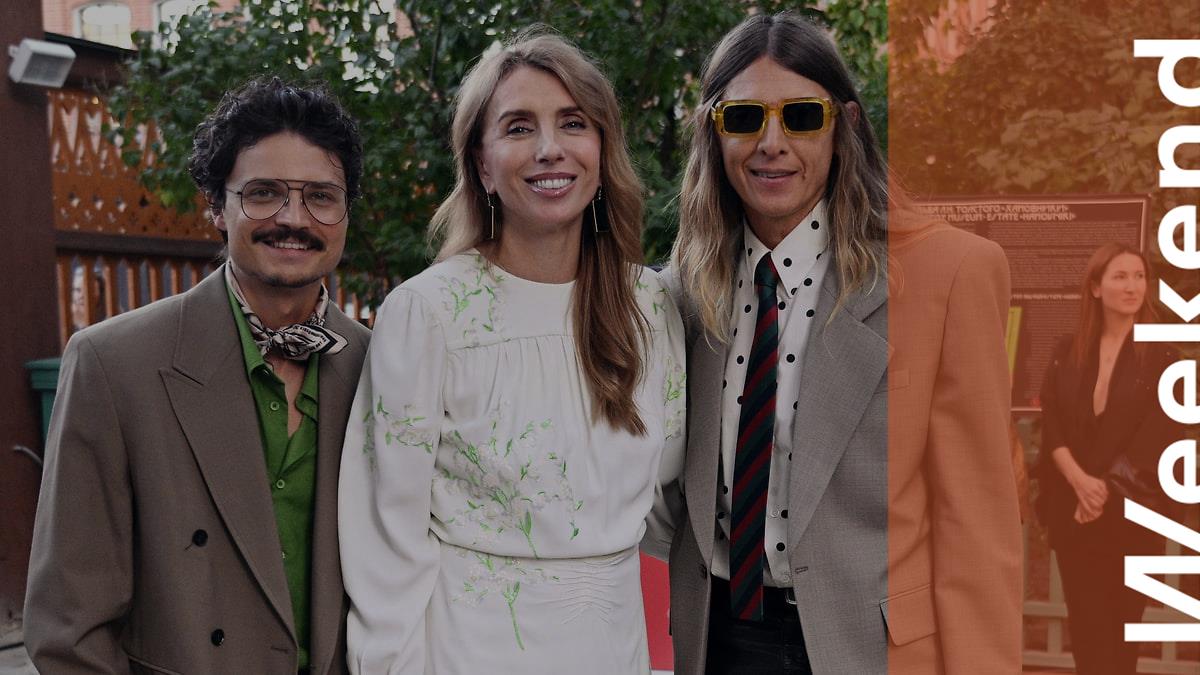 Владелица агентства PR-International Светлана Бондарчук и стилист Влад Лисовец (справа) на показе бренда RUBAN в Музее-усадьбе Льва Толстого