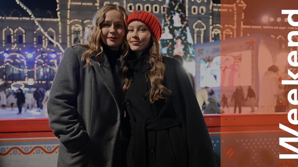 Актриса Юлия Пересильд с дочерью Анной на церемонии открытия ГУМ-катка на Красной площади